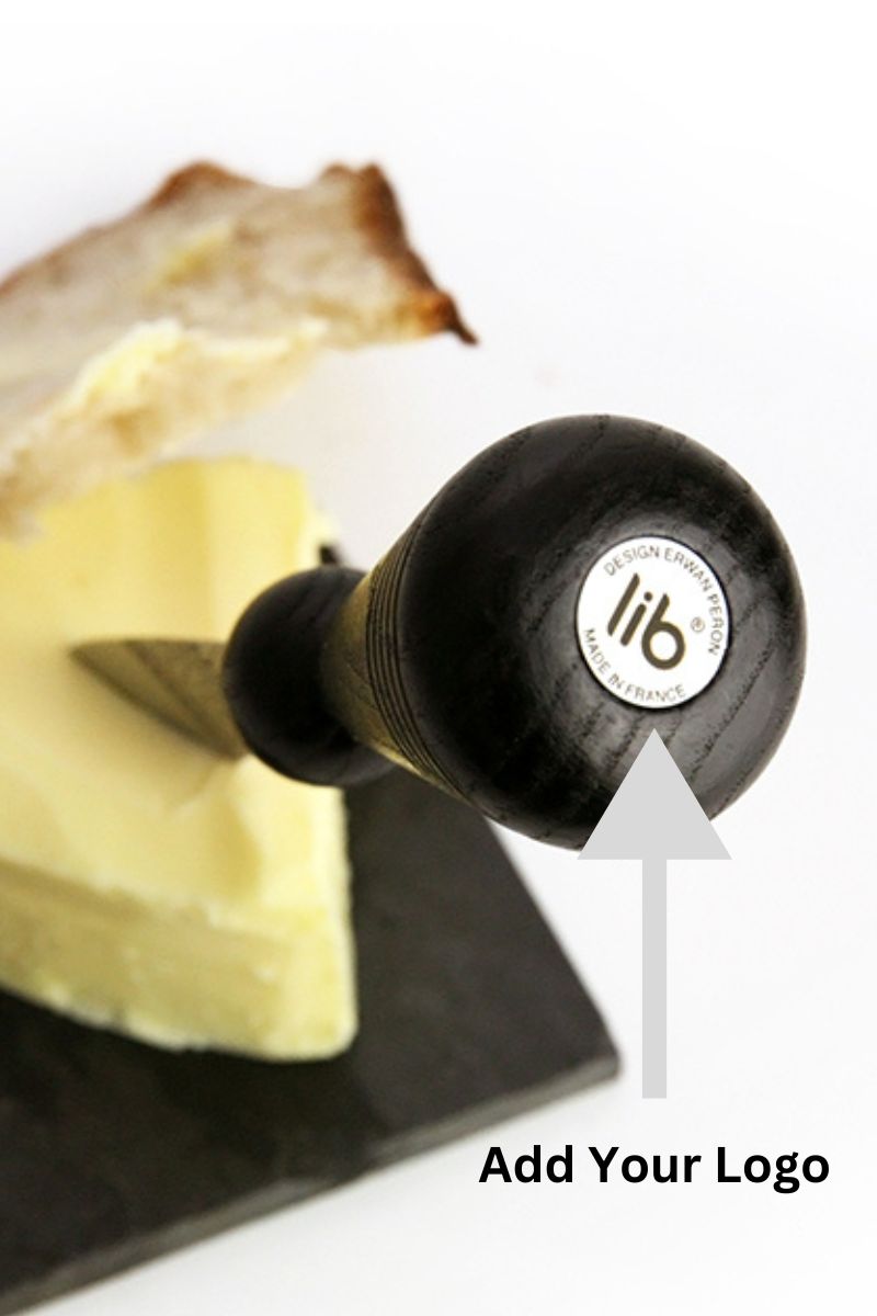 - You can add your logo to the French Spreading Knife by engraving the metal disk with your logo.