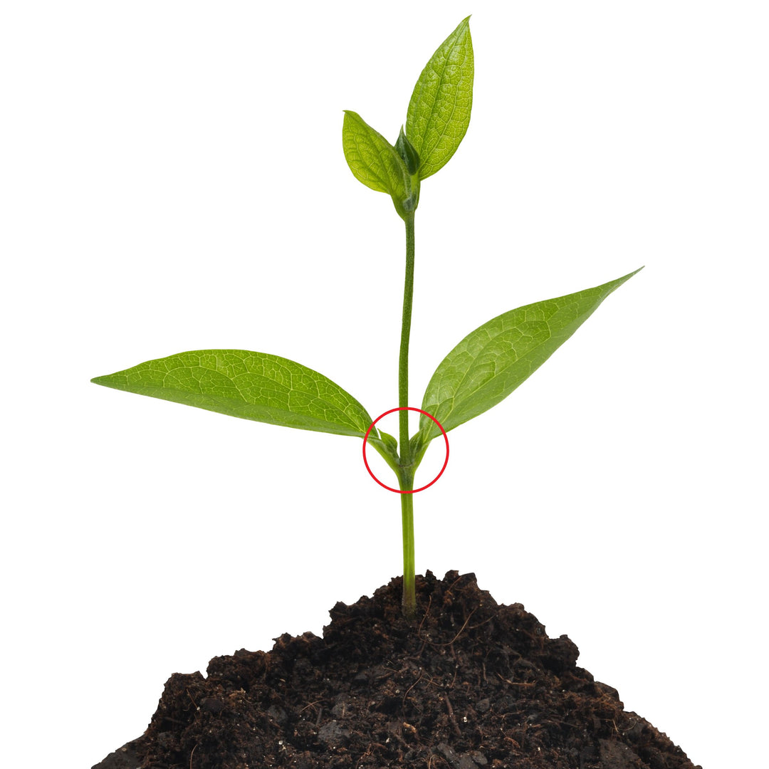 In botany a node is the place on the stem of a plant from which a new leaf grows.